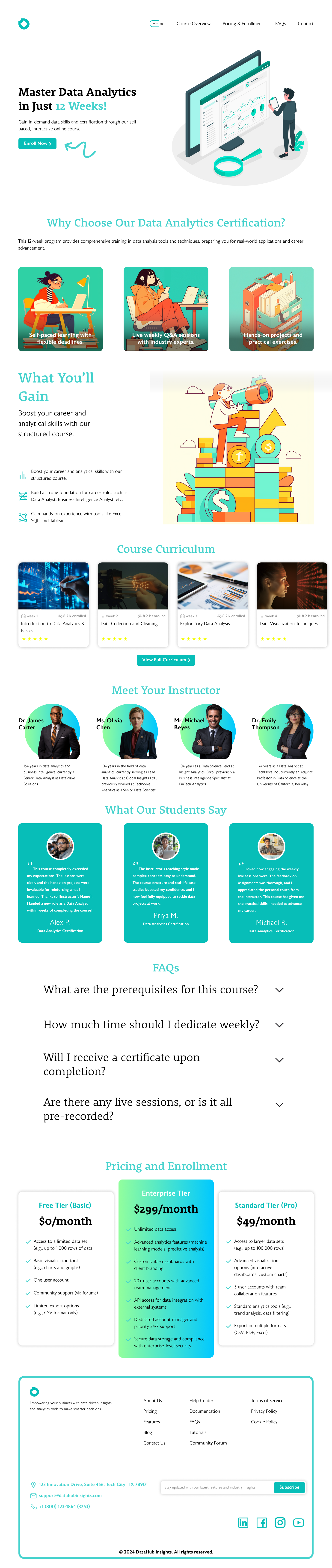 I designed the website for a comprehensive Data Analytics course aimed at empowering learners to thrive in the data-driven world. The course offers a 12-week, self-paced, and interactive online program with industry-recognized certification, equipping students with hands-on skills in key data analytics techniques and tools.